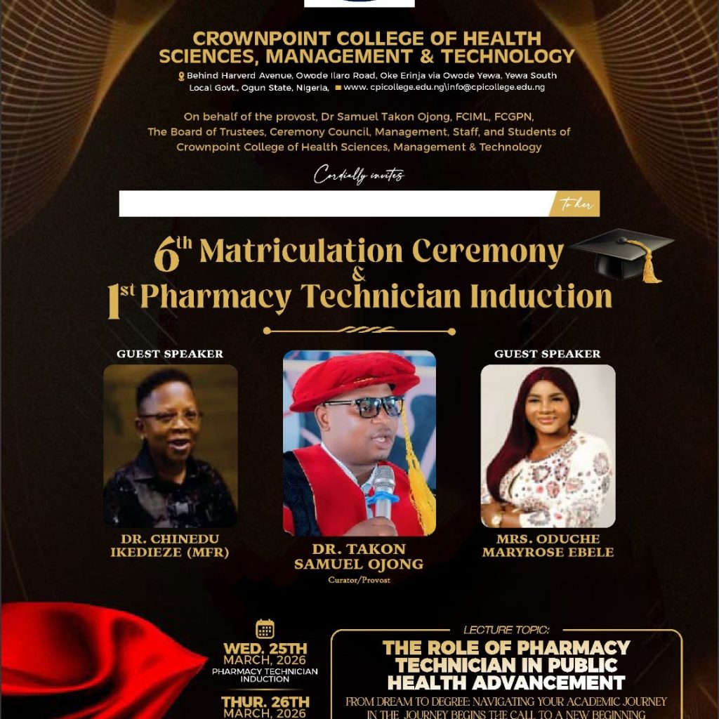 Today marks the beginning of an exciting journey, one filled with opportunities to learn, grow, and contribute to the ever-evolving fields of health sciences, management, and technology. At Crown Point, we are not just an institution of learning; we are a family united by a shared vision of excellence, innovation, and service to humanity.