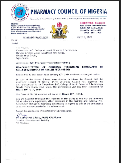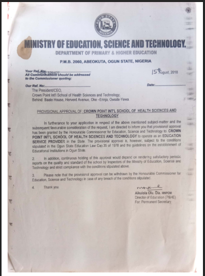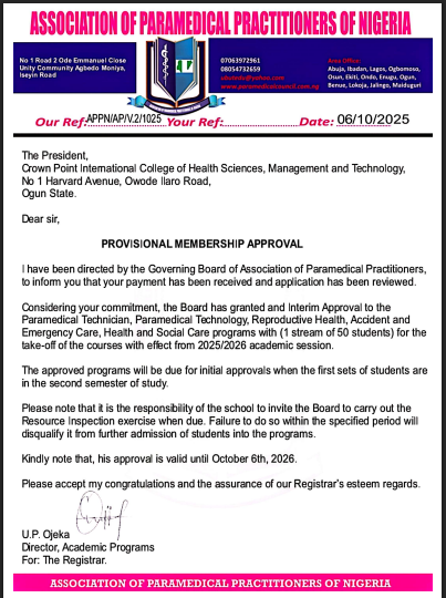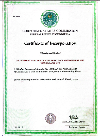 Crown Point College of Health Sciences, Management & Technology is an accredited and certified educational institution. All our academic programmes meets established quality standards regarding its curriculum, staff, and operations. It ensures educational quality, validates that credits/degrees are legitimate and is recognized as meeting the standards of excellence in operating as a college of health.